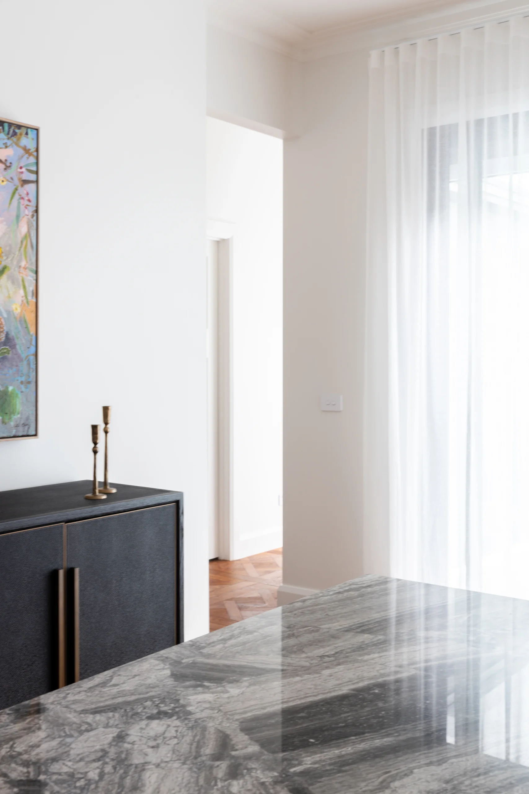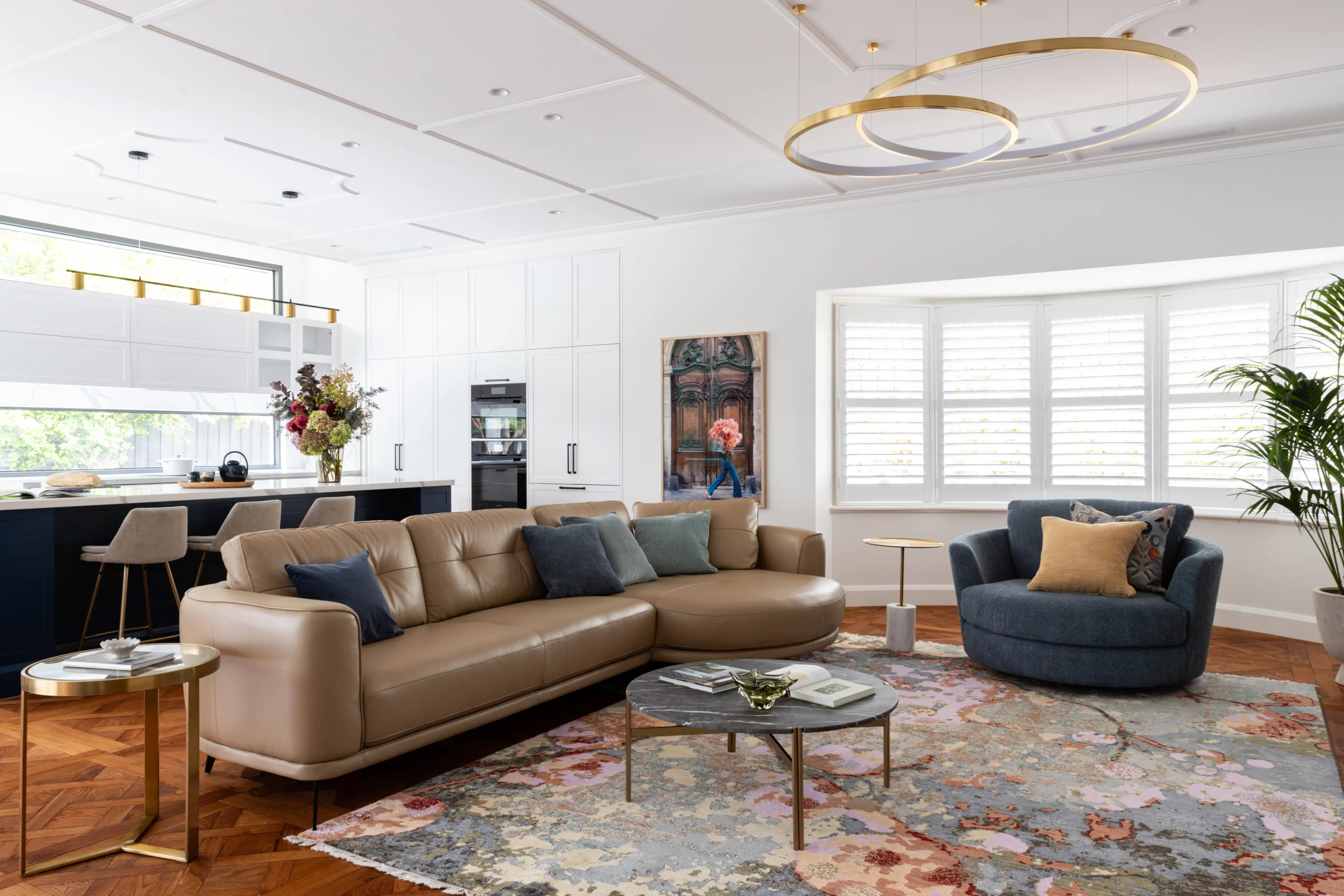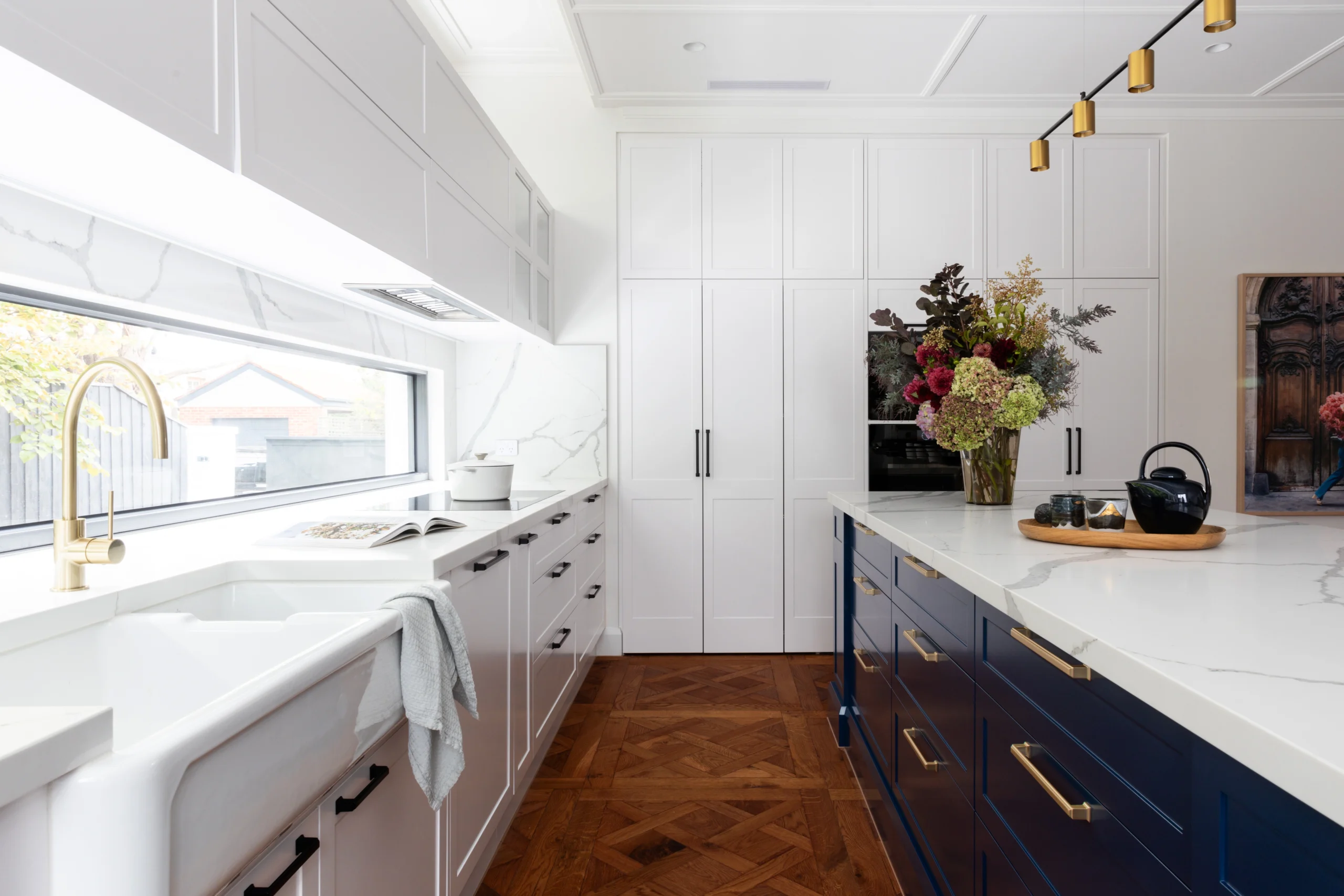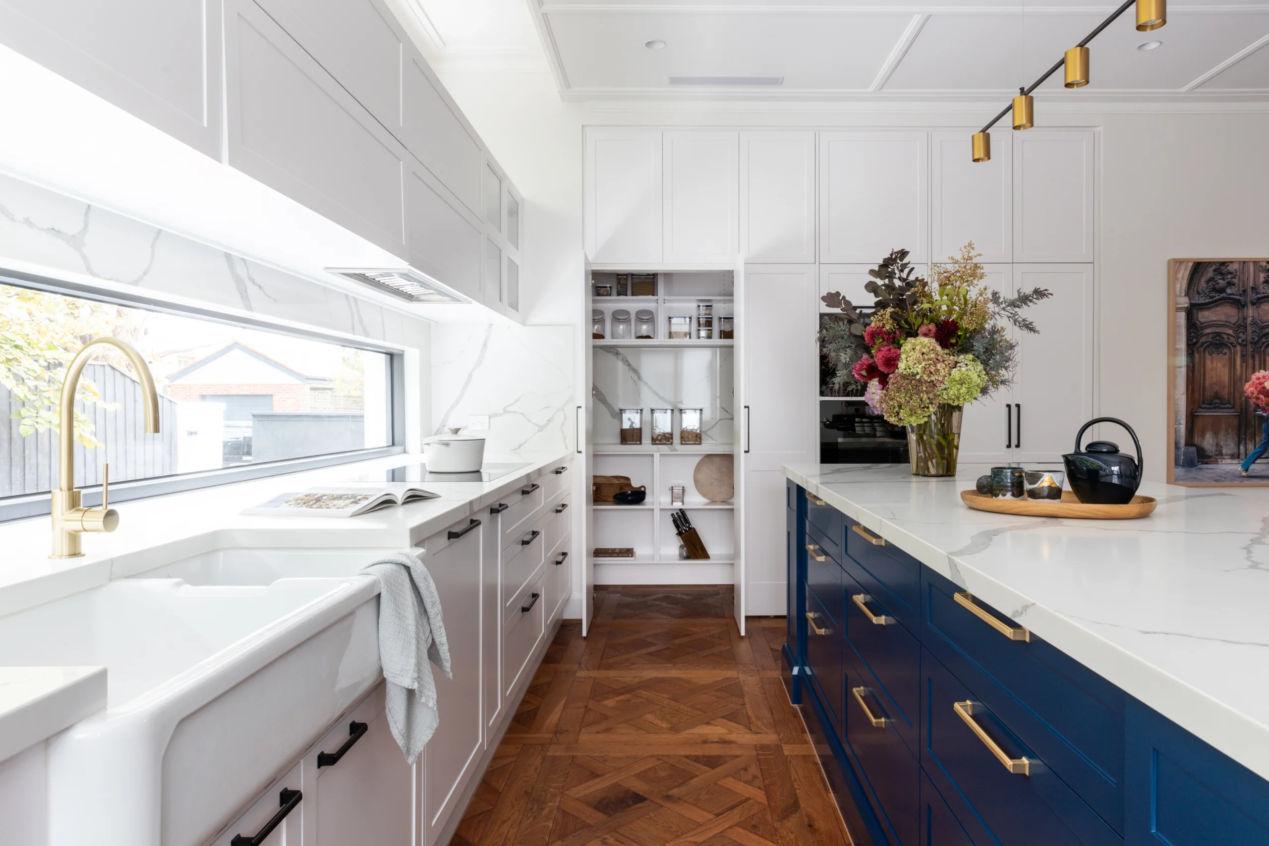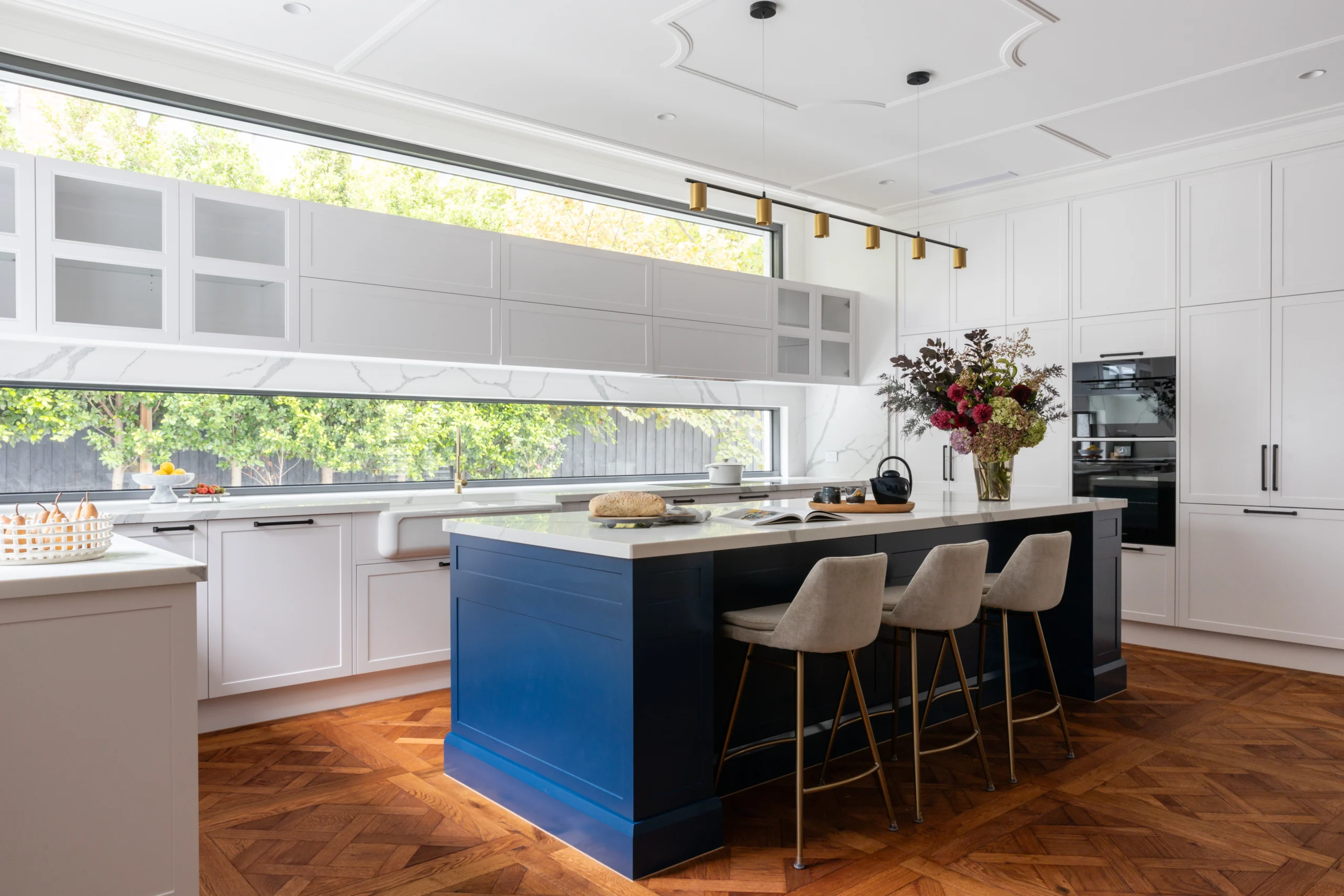 Honouring the soul of the original architecture while introducing a refined modern sensibility, every element has been meticulously curated. The statement blue joinery; rich, confident, and deeply considered, adds a layer of depth and quiet drama. A bold yet balanced gesture, it ties the interiors together with effortless sophistication.